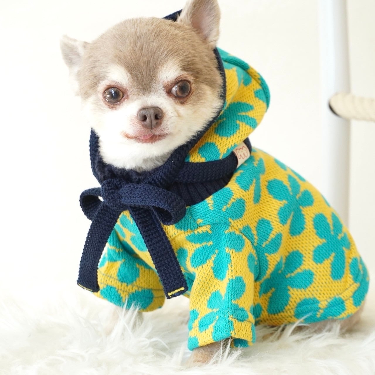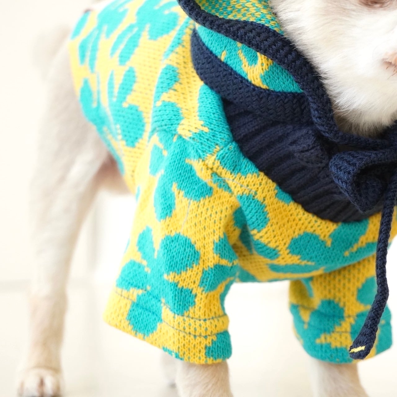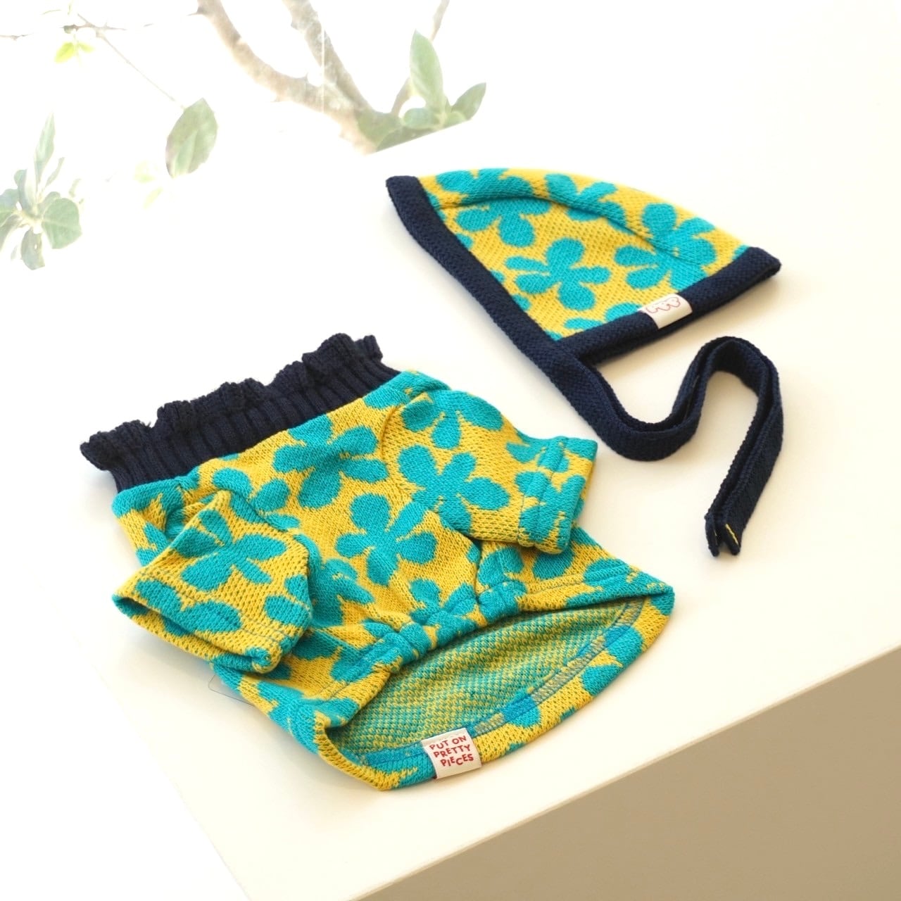 花柄の編み込まれたニットとバラクラバのセットのニット。