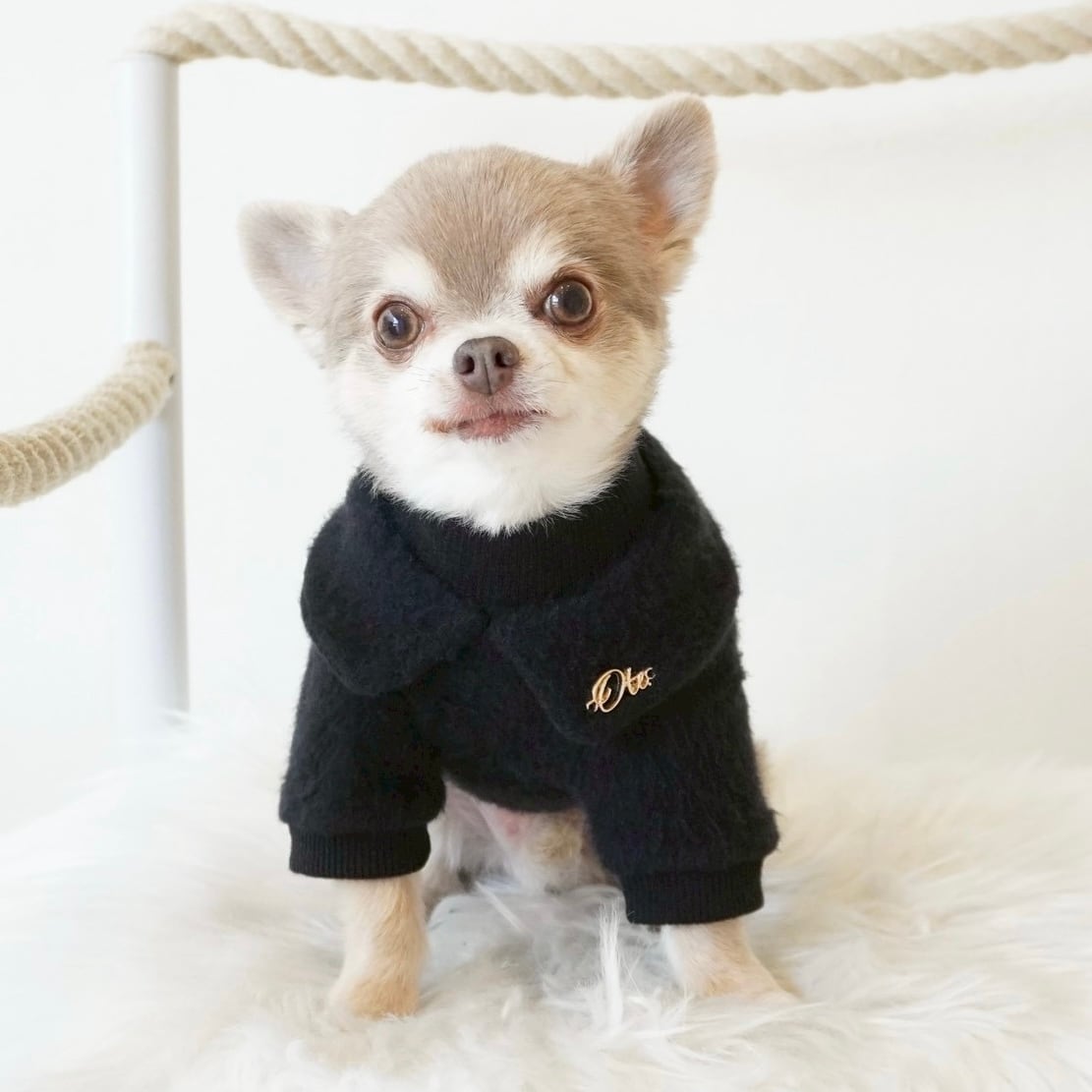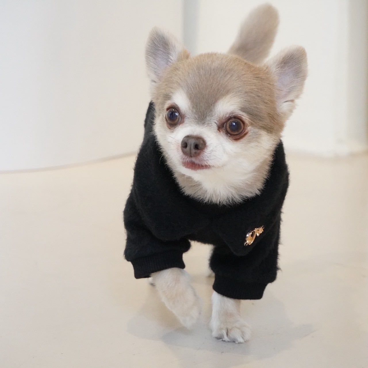ワンカラーなシンプルなデザインですが、チラッと見えるリブのネックや、襟のチャームが程よいアクセントとなります。