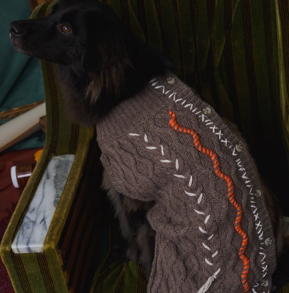 モヘアとケーブルのアシンメトリーなデザインが特徴的なニット。