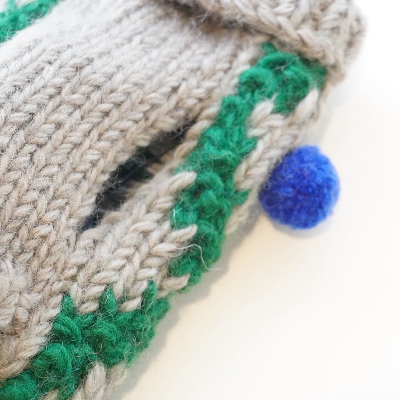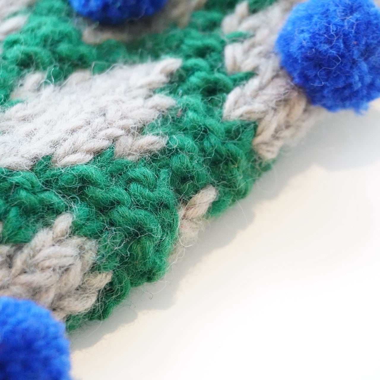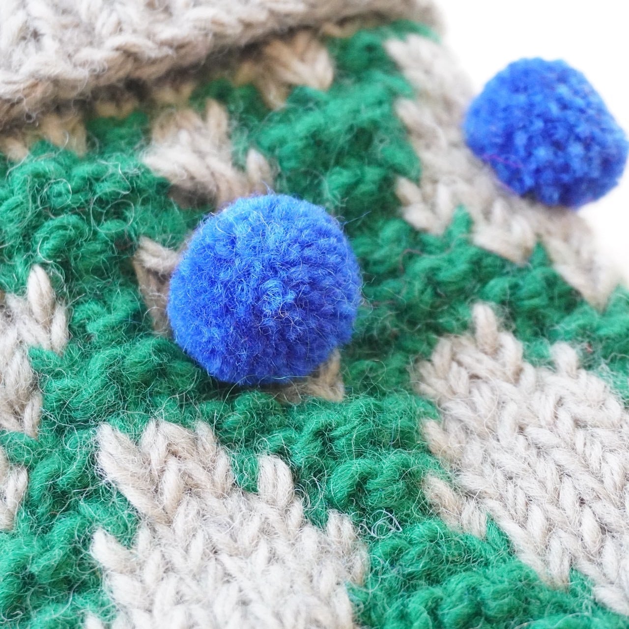 背中一面のアーガイルチェックとポンポンの組み合わせはアクセントがあり、インポートらしいデザインです。
