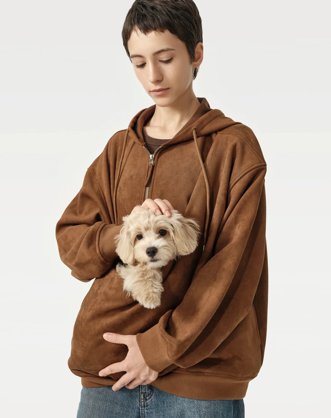 パートナーとの暮らしに最適なフェイクスウェードフーディ。