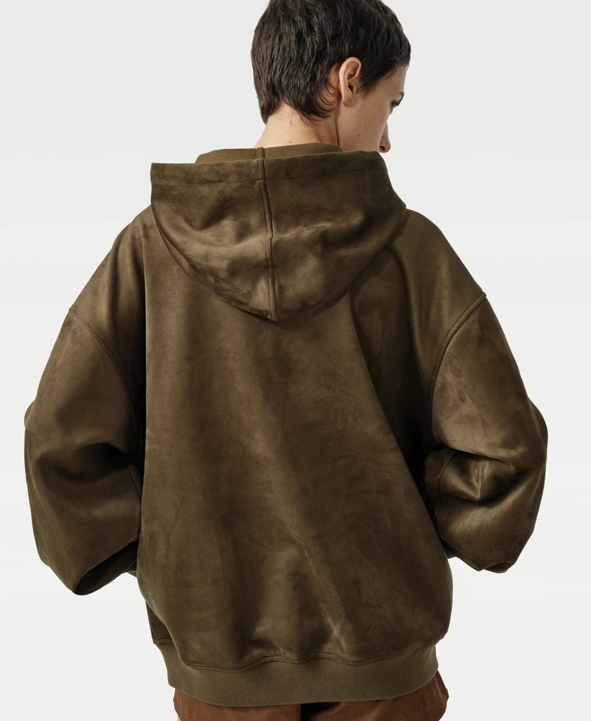 パートナーとの暮らしに最適なフェイクスウェードフーディ。