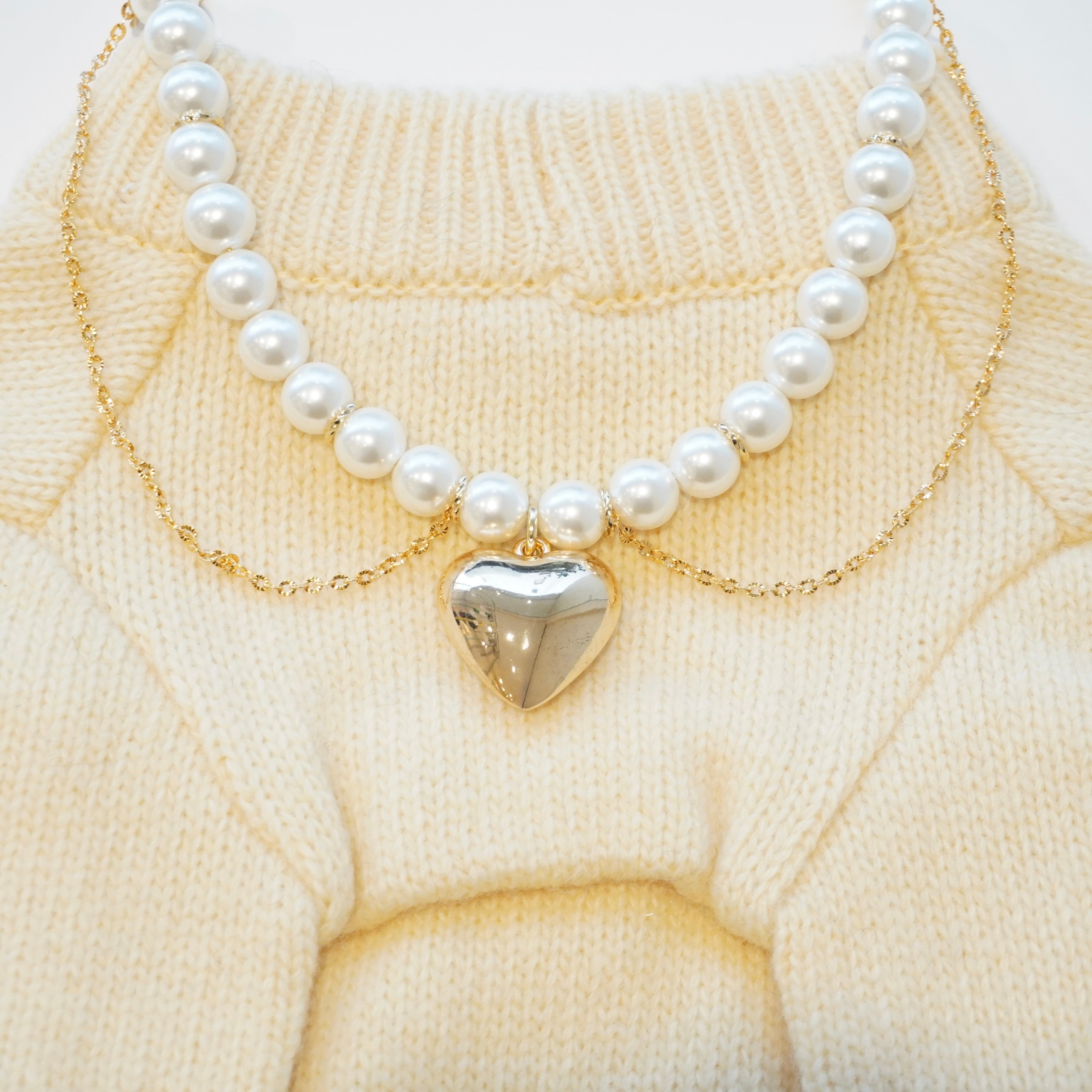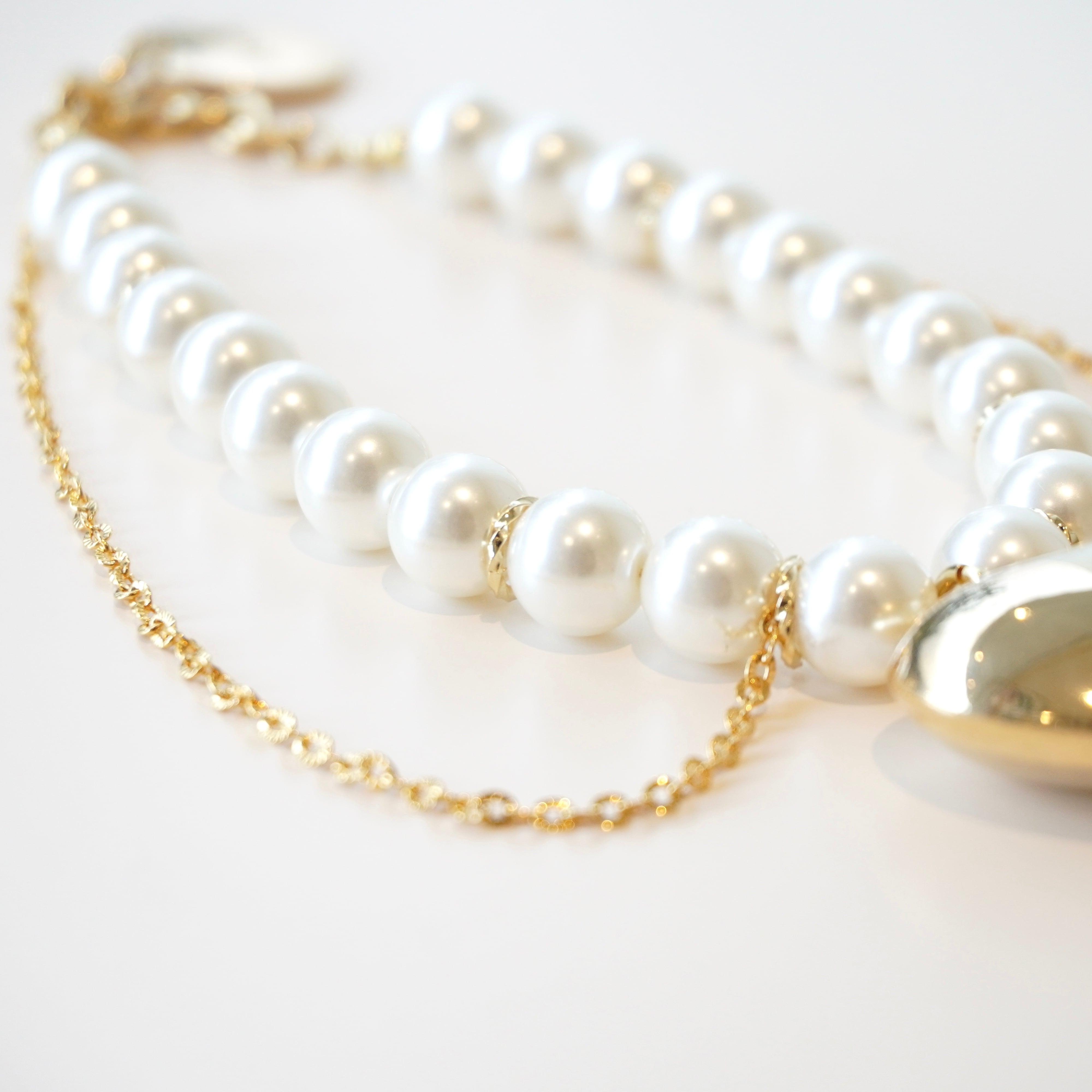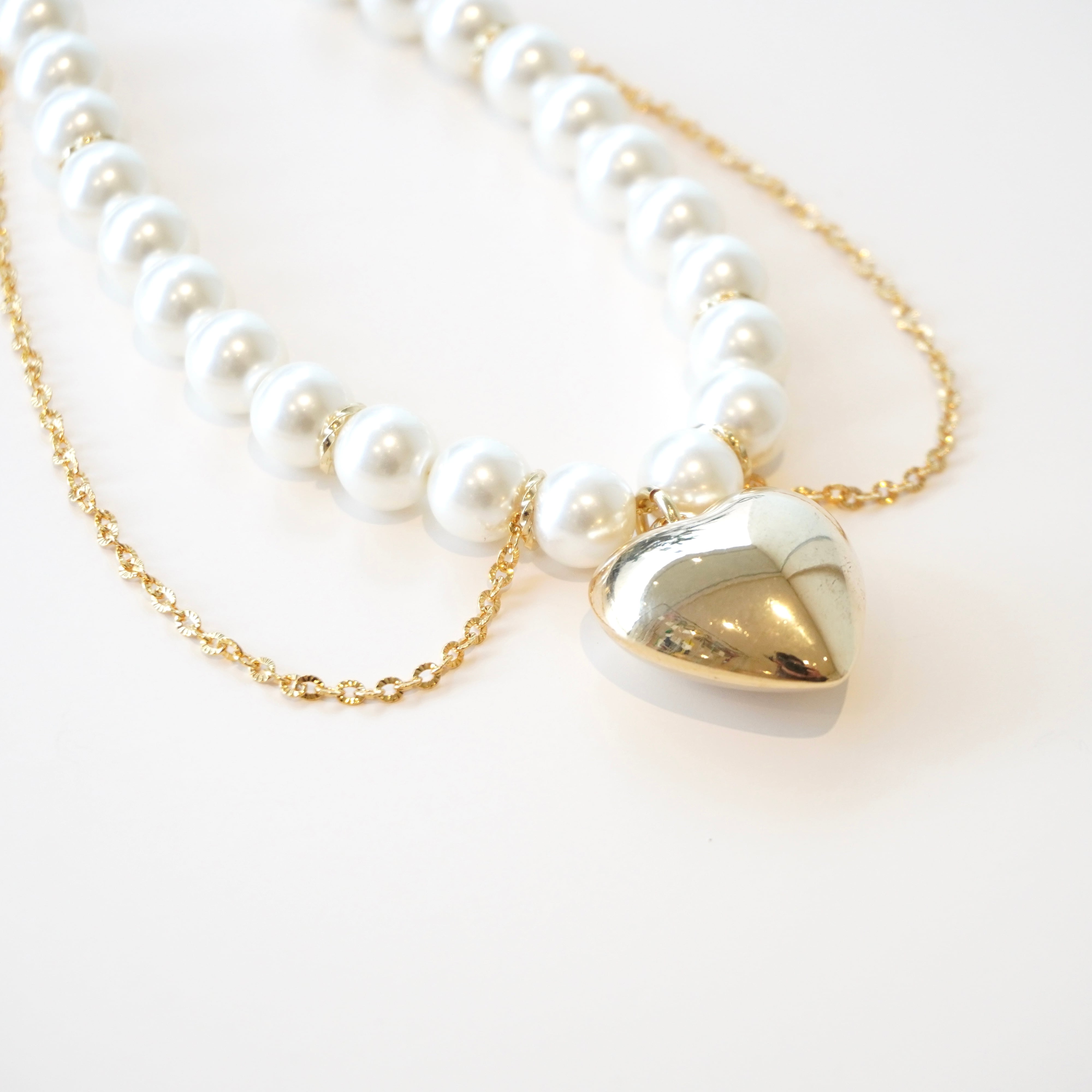 目を引くハートのトップと付け襟のようなチェーンでシンプルな洋服も一気に華やかな印象に。