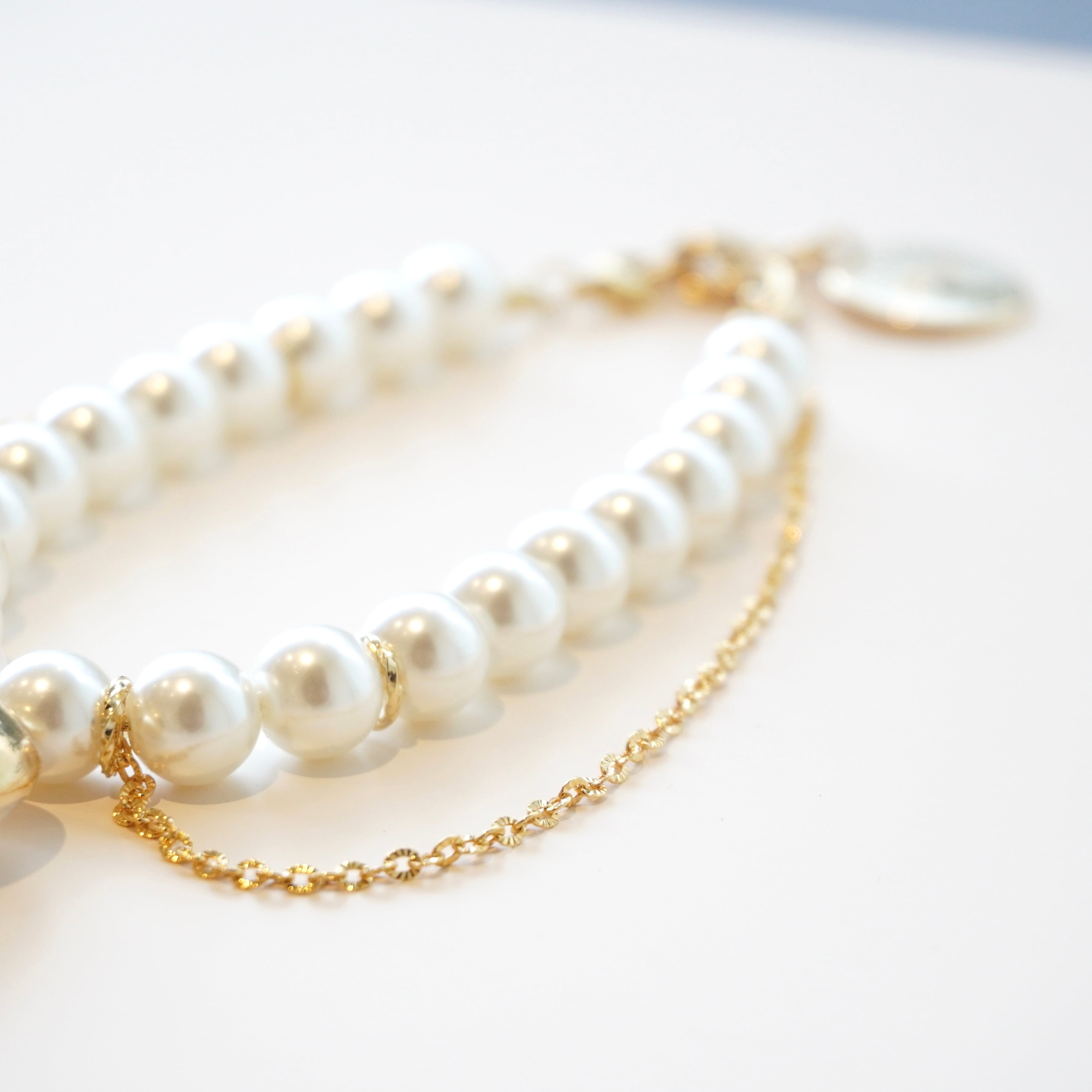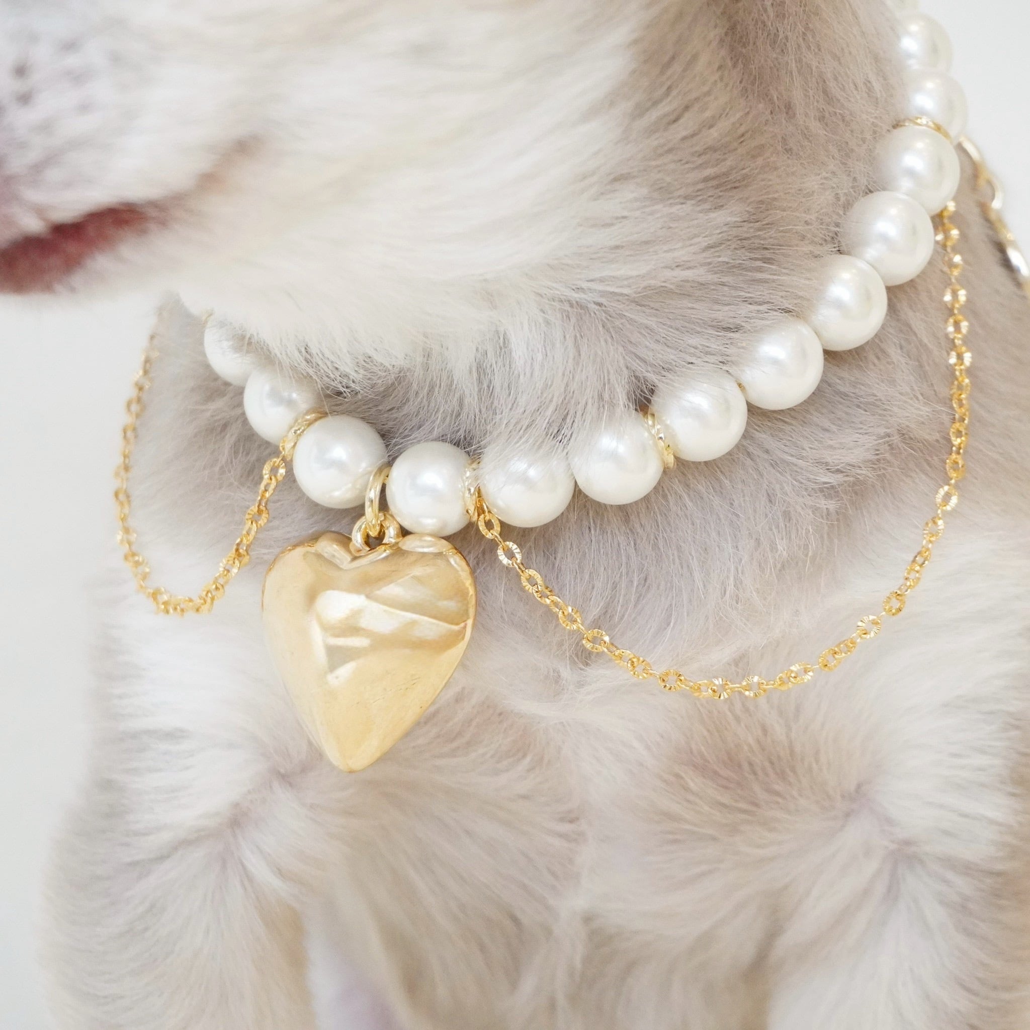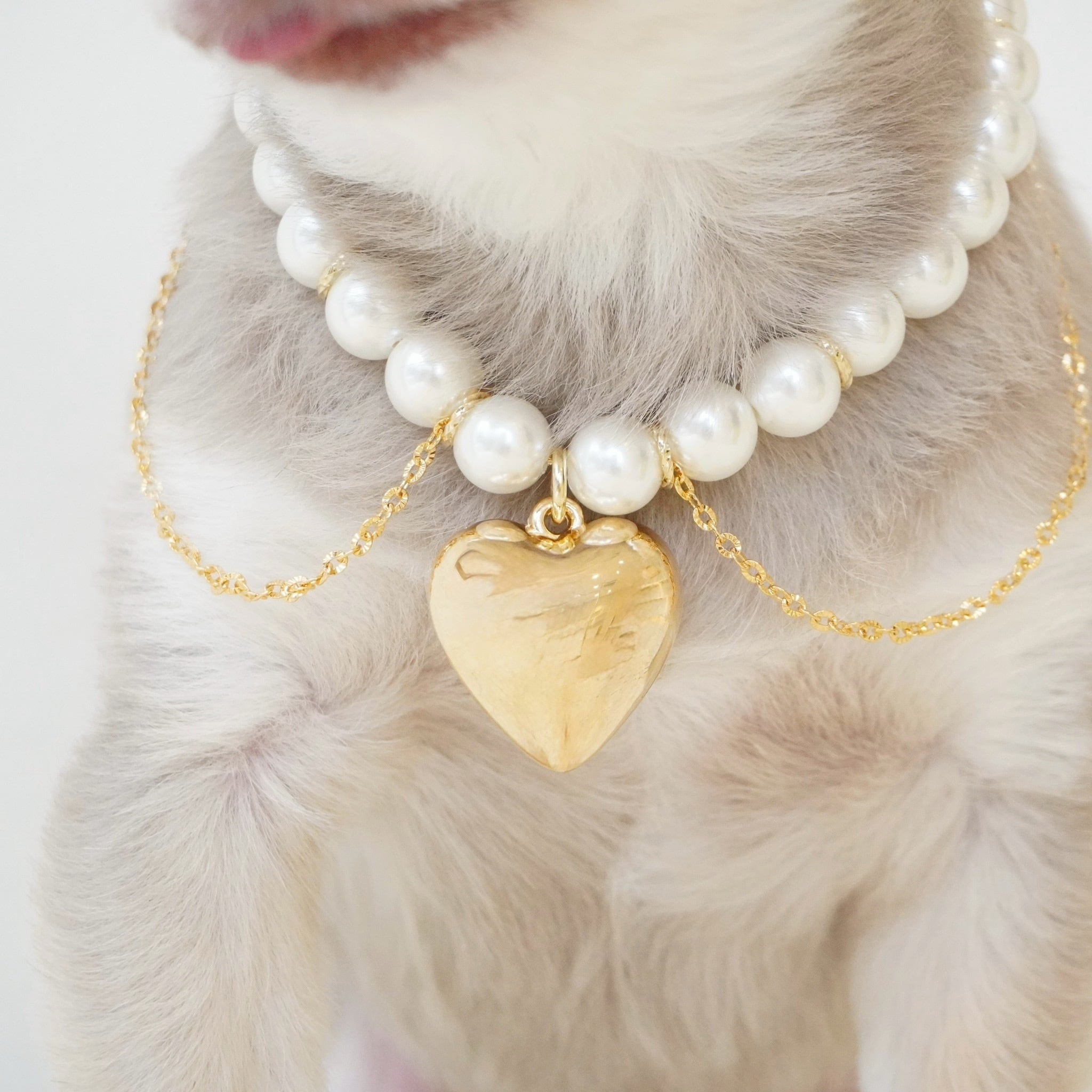 目を引くハートのトップと付け襟のようなチェーンでシンプルな洋服も一気に華やかな印象に。