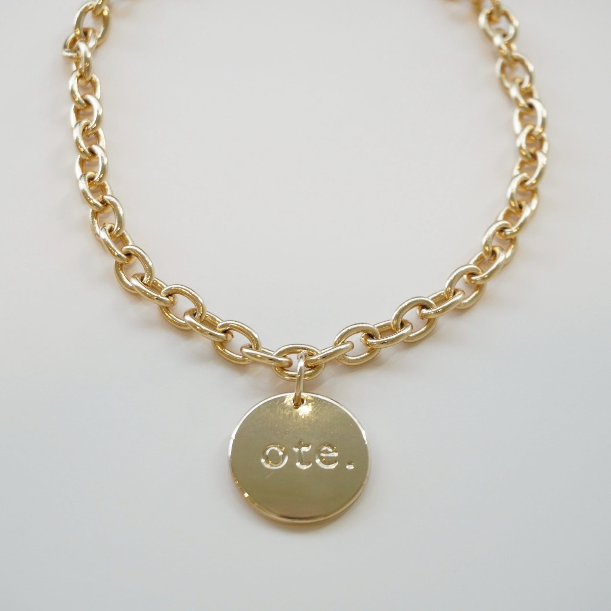 ote.オリジナルチャームをトップにシンプルなデザインでどのコーディネートにもはまるネックレス。