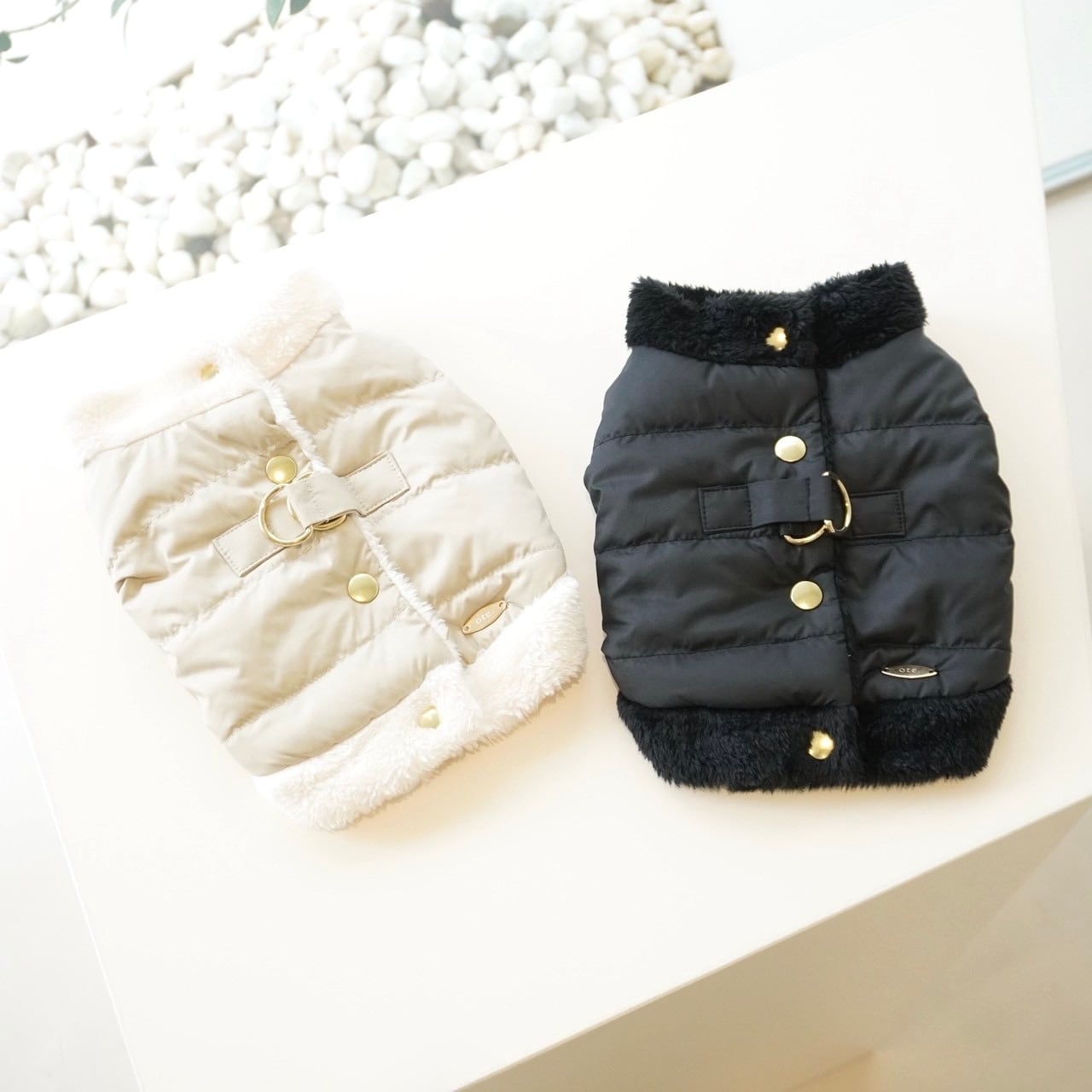 ふんわりとしたダウンを贅沢に使用したボディハーネス型アウター。