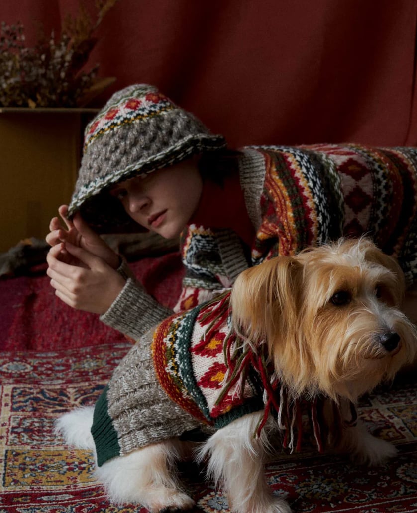 ノルディック柄とケーブルのデザイン性のあるニットとなっています。