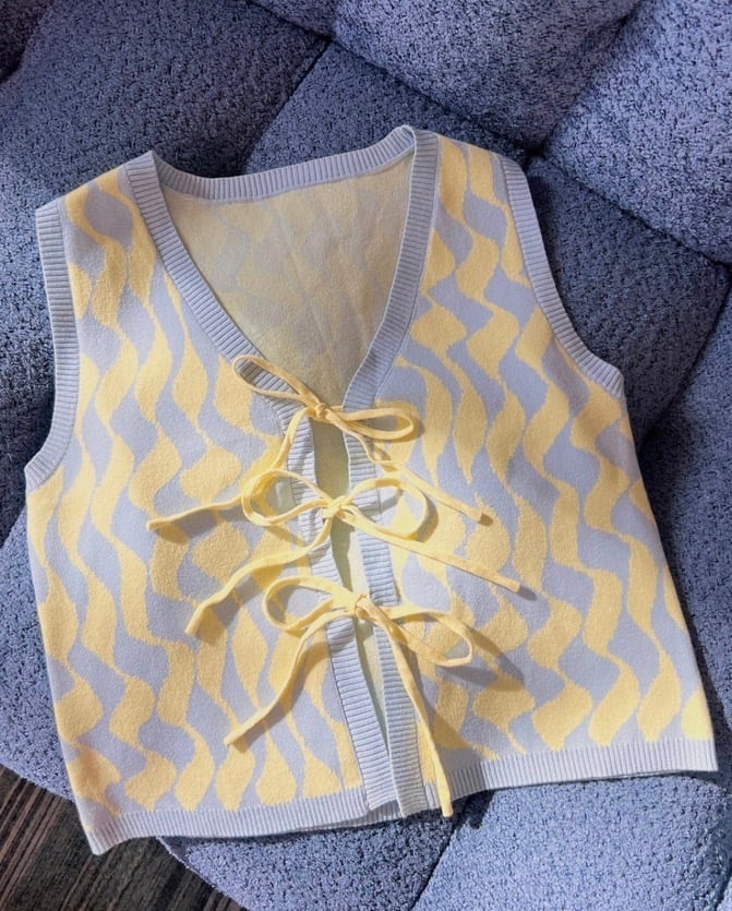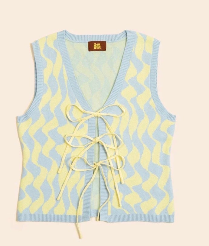 【Seaside Swirl Human Cotton Knitted Tunic Vest with Tie Front】