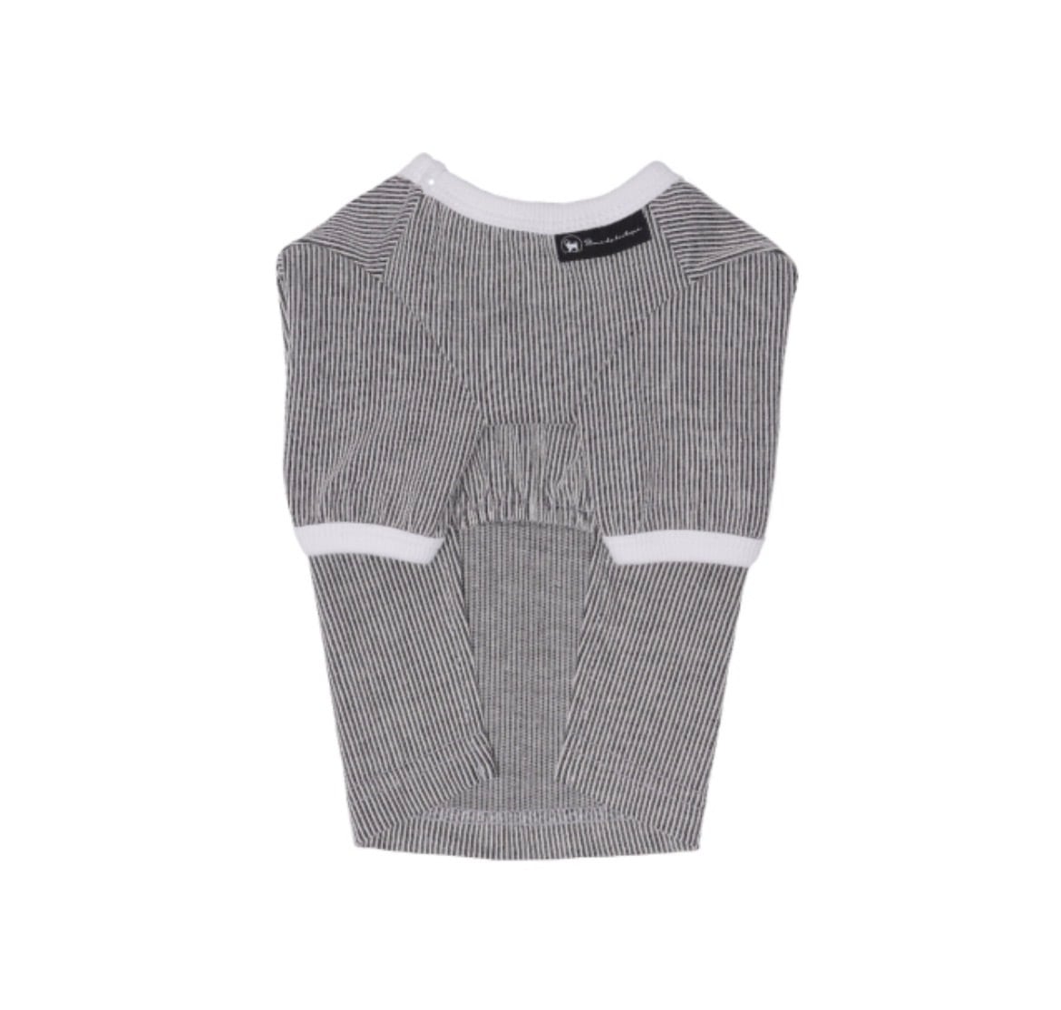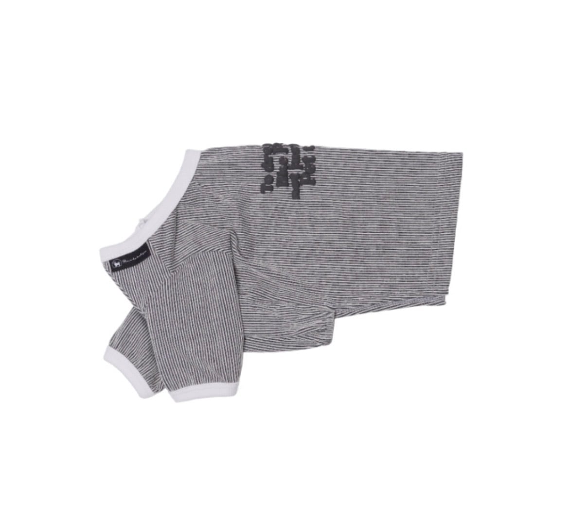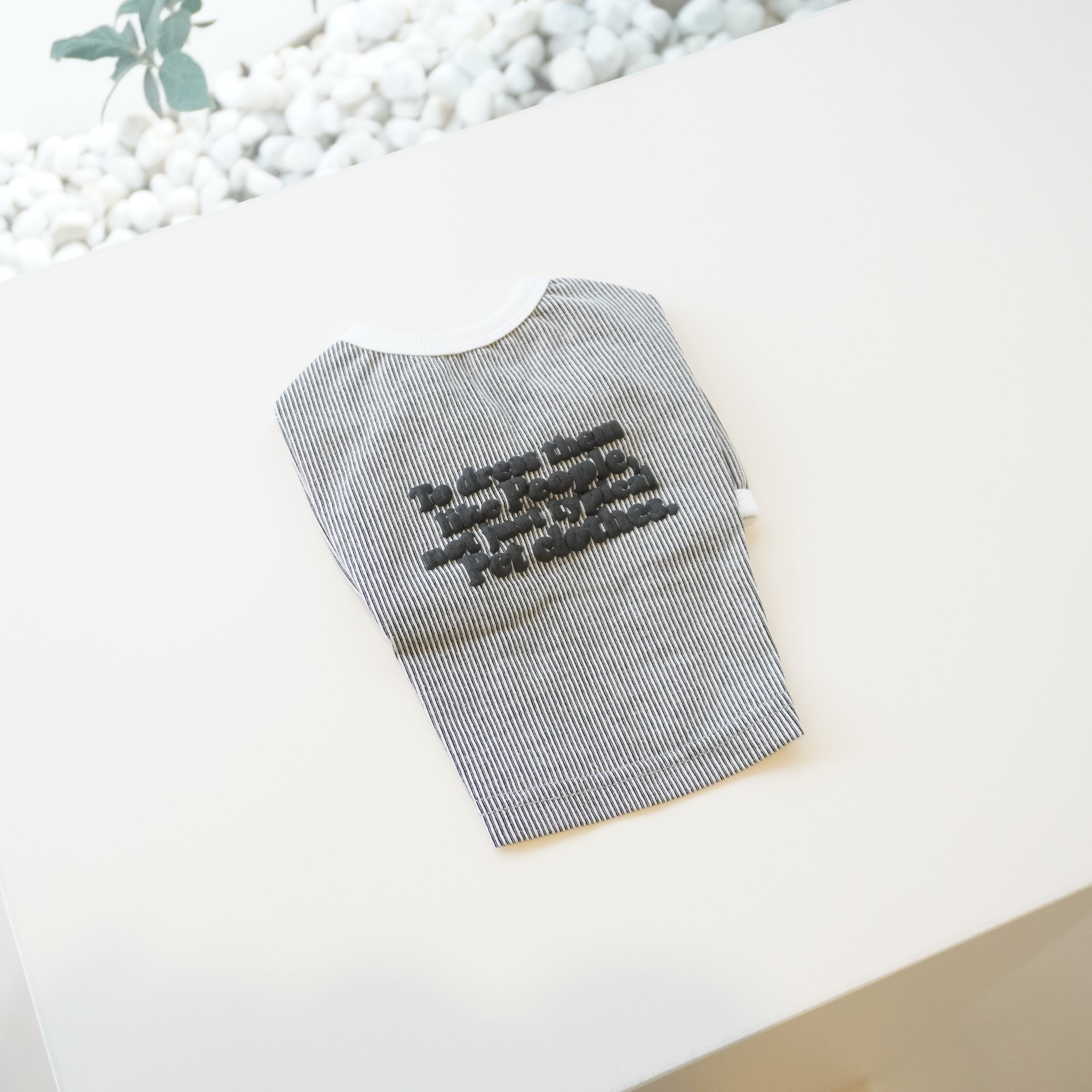 背中には「To dress them like People,not just typical Pet clothes.」(犬の服ではなく、人の服のように着たい)の文章が発泡プリントでデザインされています。