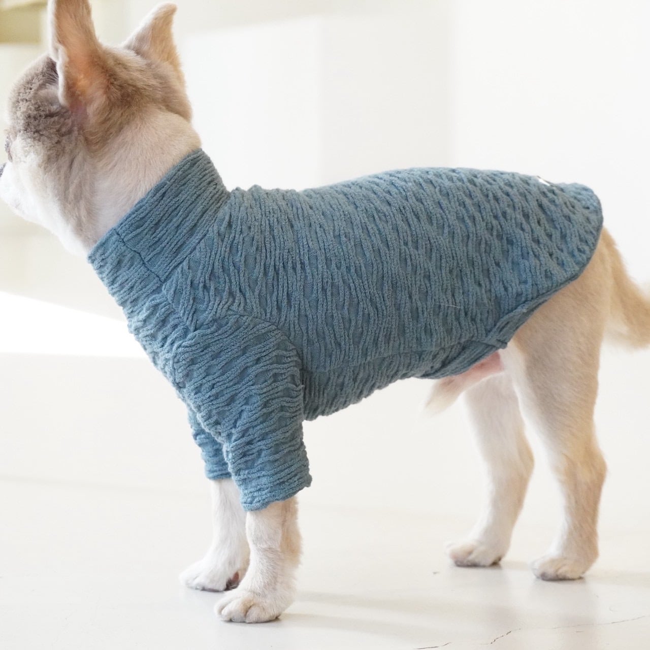織りで表現された凹凸感が特徴的なカットソー。