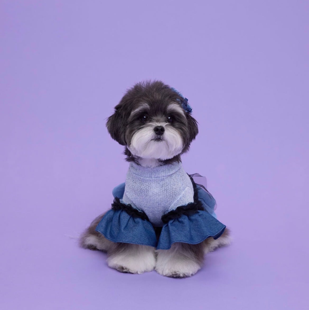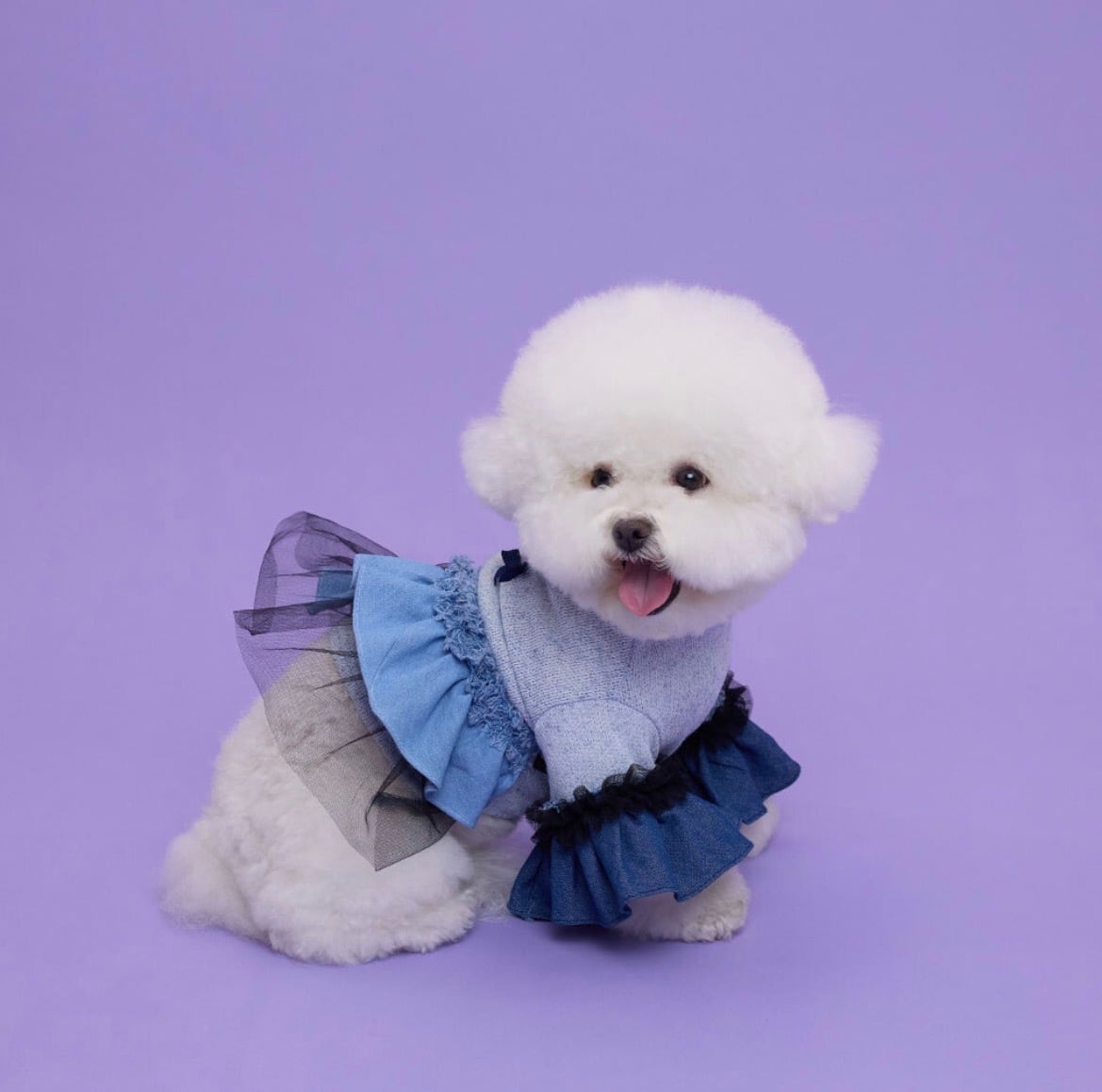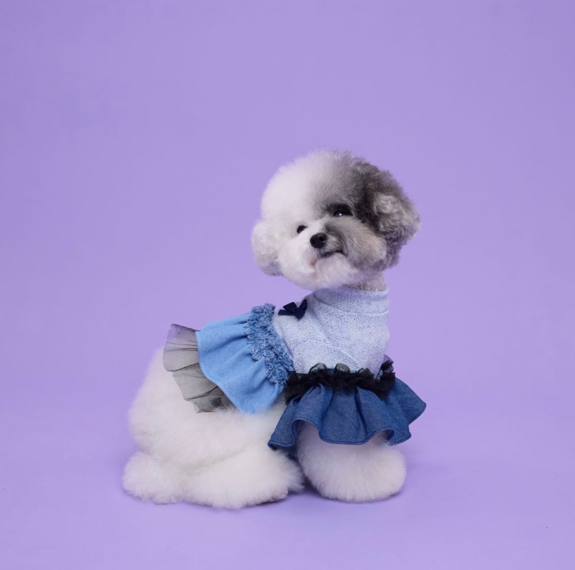 【comocomo】 ポップなカラーリングと細かな装飾品を得意とするブランド。 丈感やシルエットなど、細部にまでデザインされたウェアはパートナーをより可愛くしてくれます。 【DENIM CANDY】 デニムとチュールをアシンメトリーに付いたワンピース。 ボディ部分は綿麻の薄手なニット素材となり春秋にぴったりな素材となります。 伸縮性も高く着脱のしやすさも特徴となっています。 後ろ身頃のリボンが程よいアクセントとなっています。 サイズ表をご確認ください。