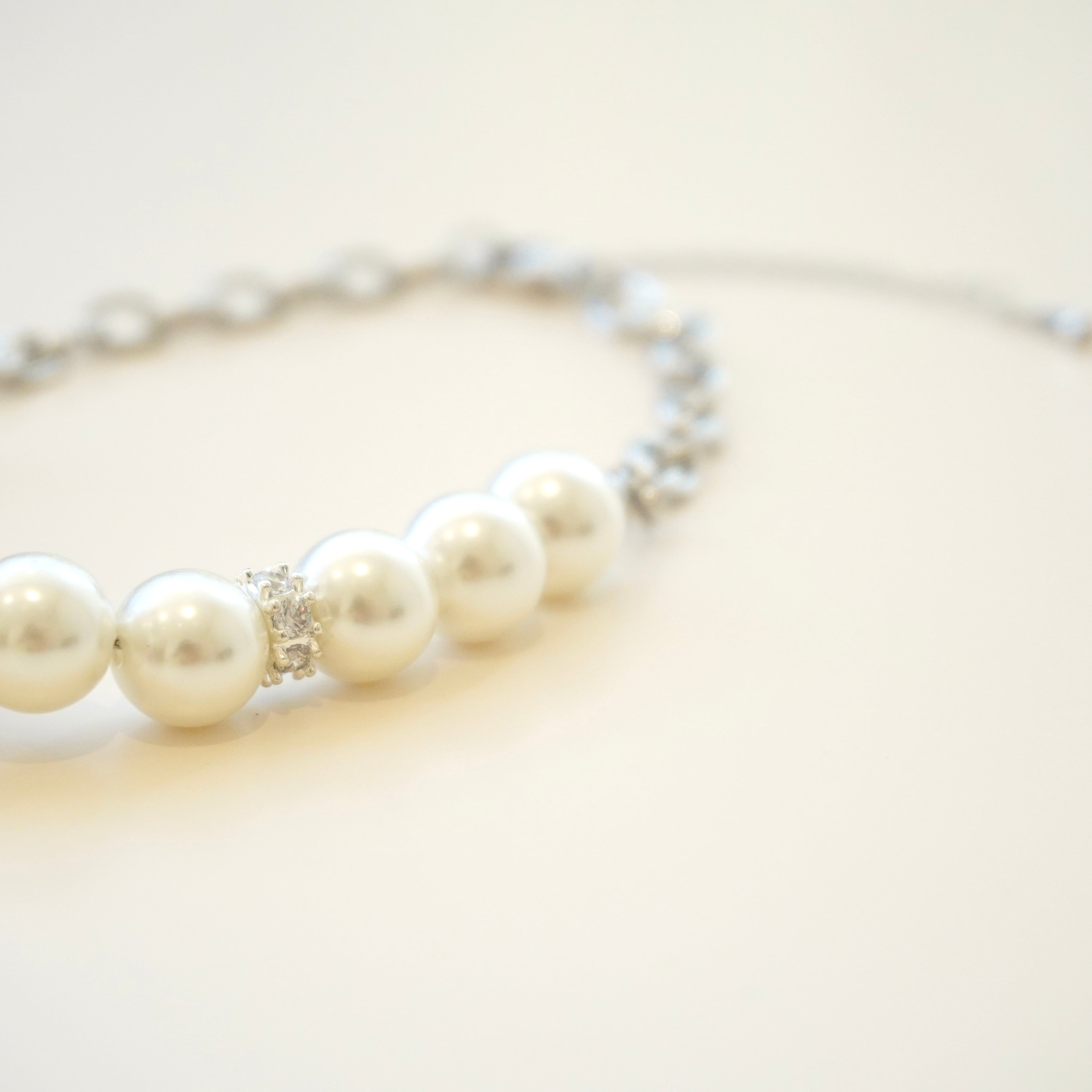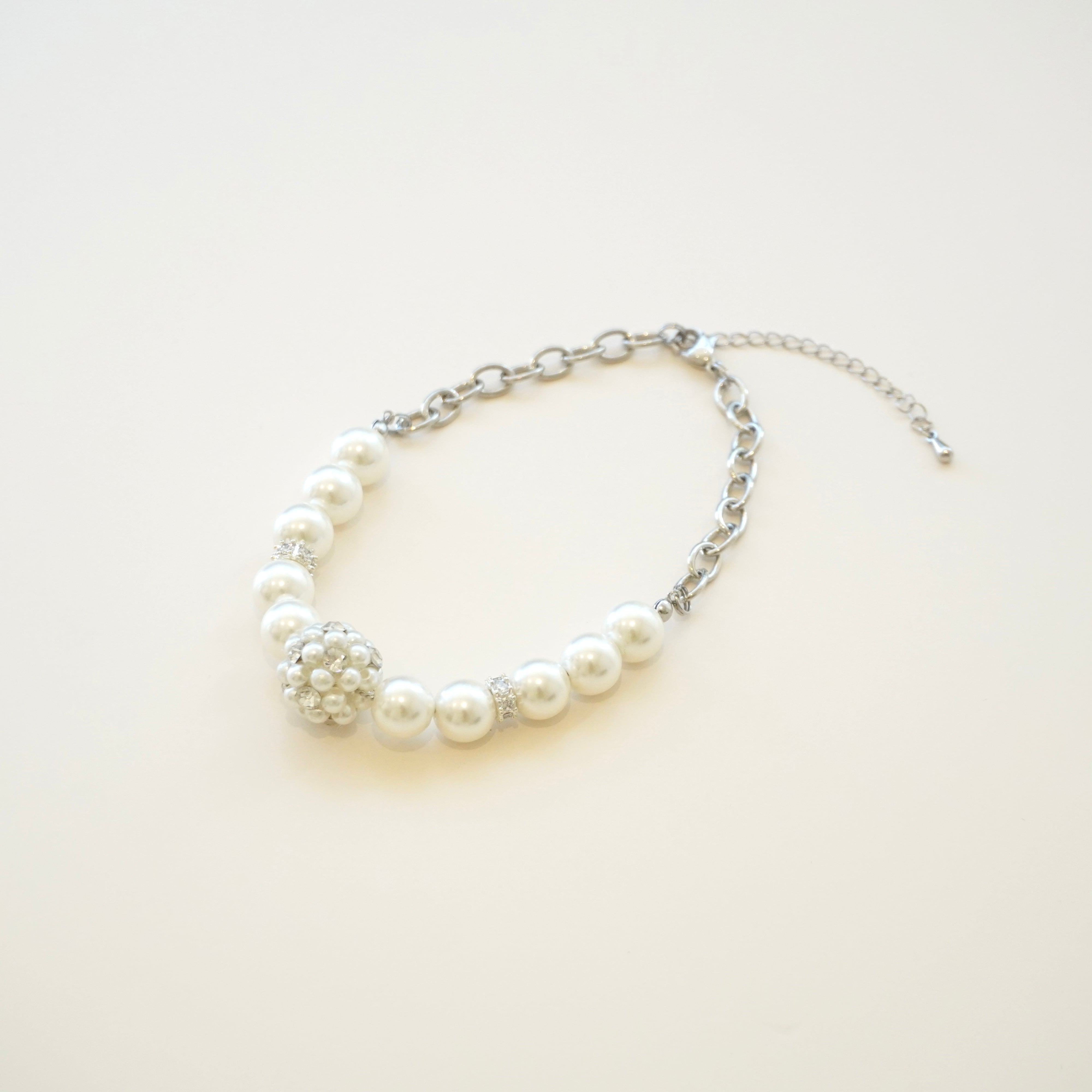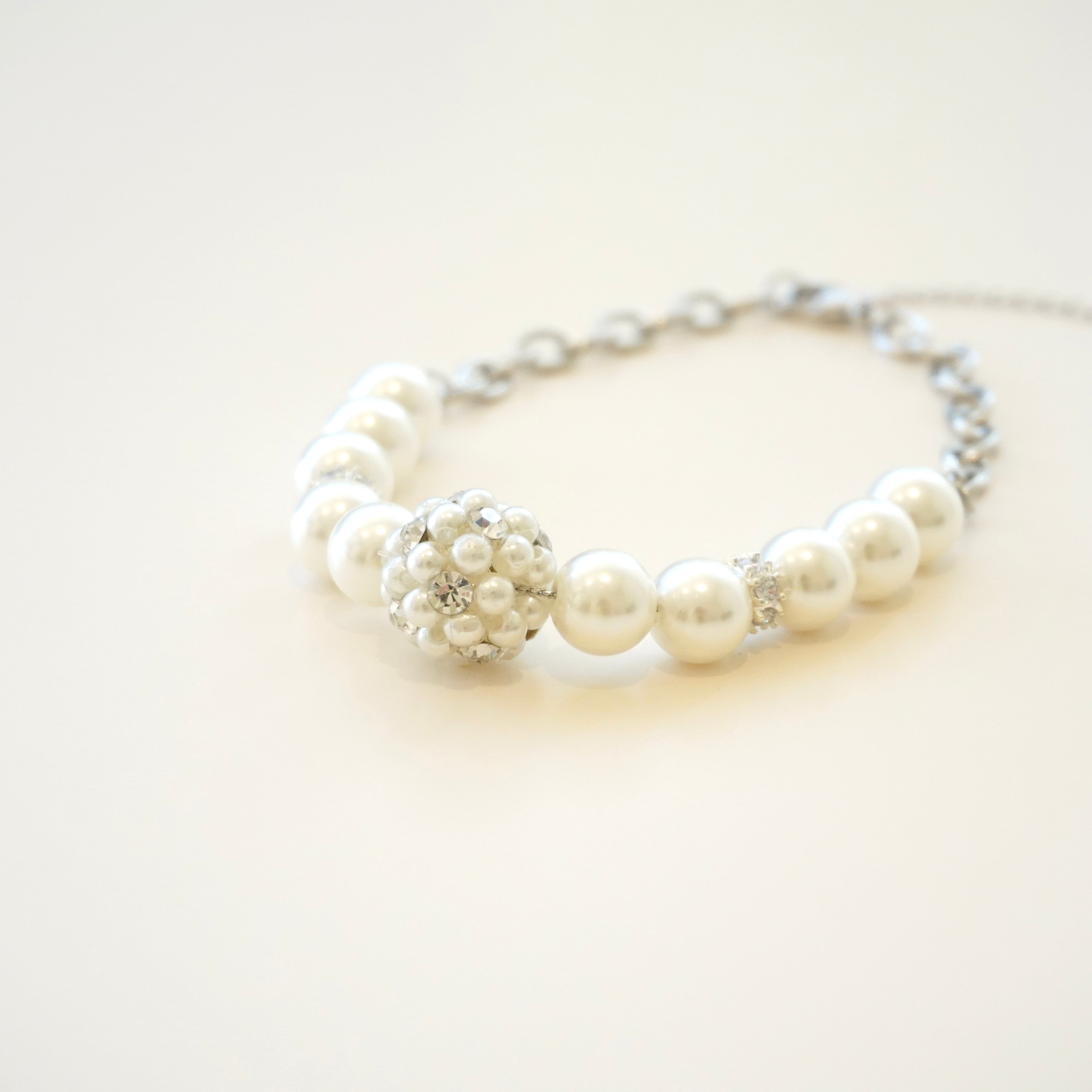 細かなパールが集まった大ぶりなボールのトップがアクセントとなるネックレス。