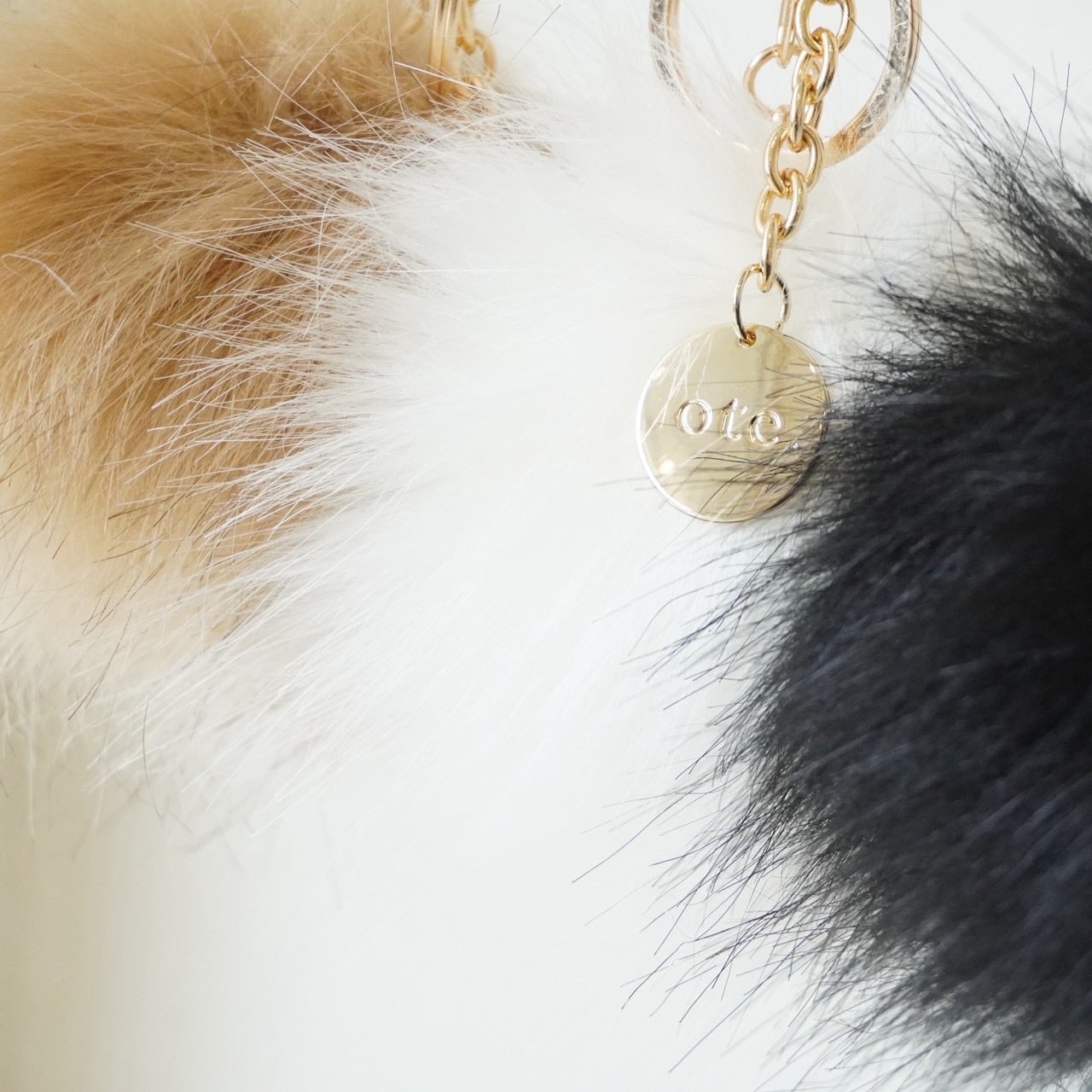 上質なエコファーを使用しており、ゴールドのチェーンとブランドチャームを組み合わせ、高級感のあるデザインに仕上げました。