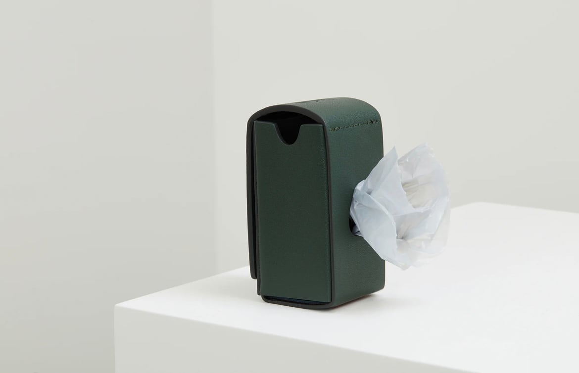 一枚の上質なレザーを独特の幾何学的な形に折り畳んで作られたTotoバッグは、Lumi LeashやRay Harnessに装着できるように設計されています。
