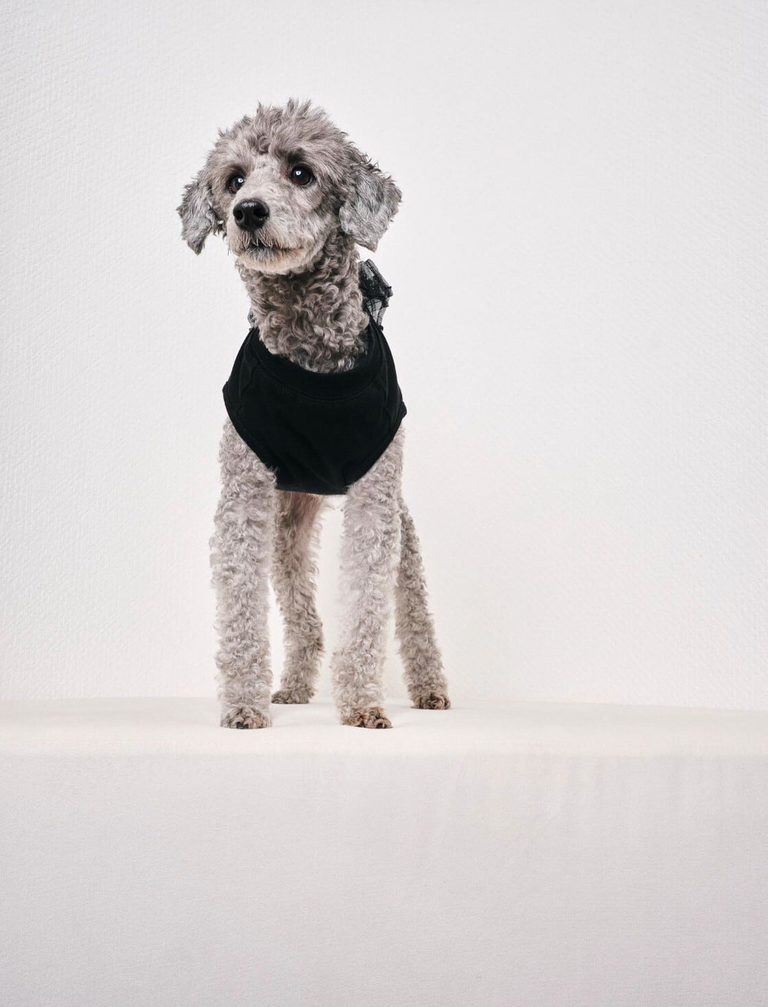 裾のドローストリングで着丈の調整ができ、愛犬のお好みのフィット感で着用いただけます。