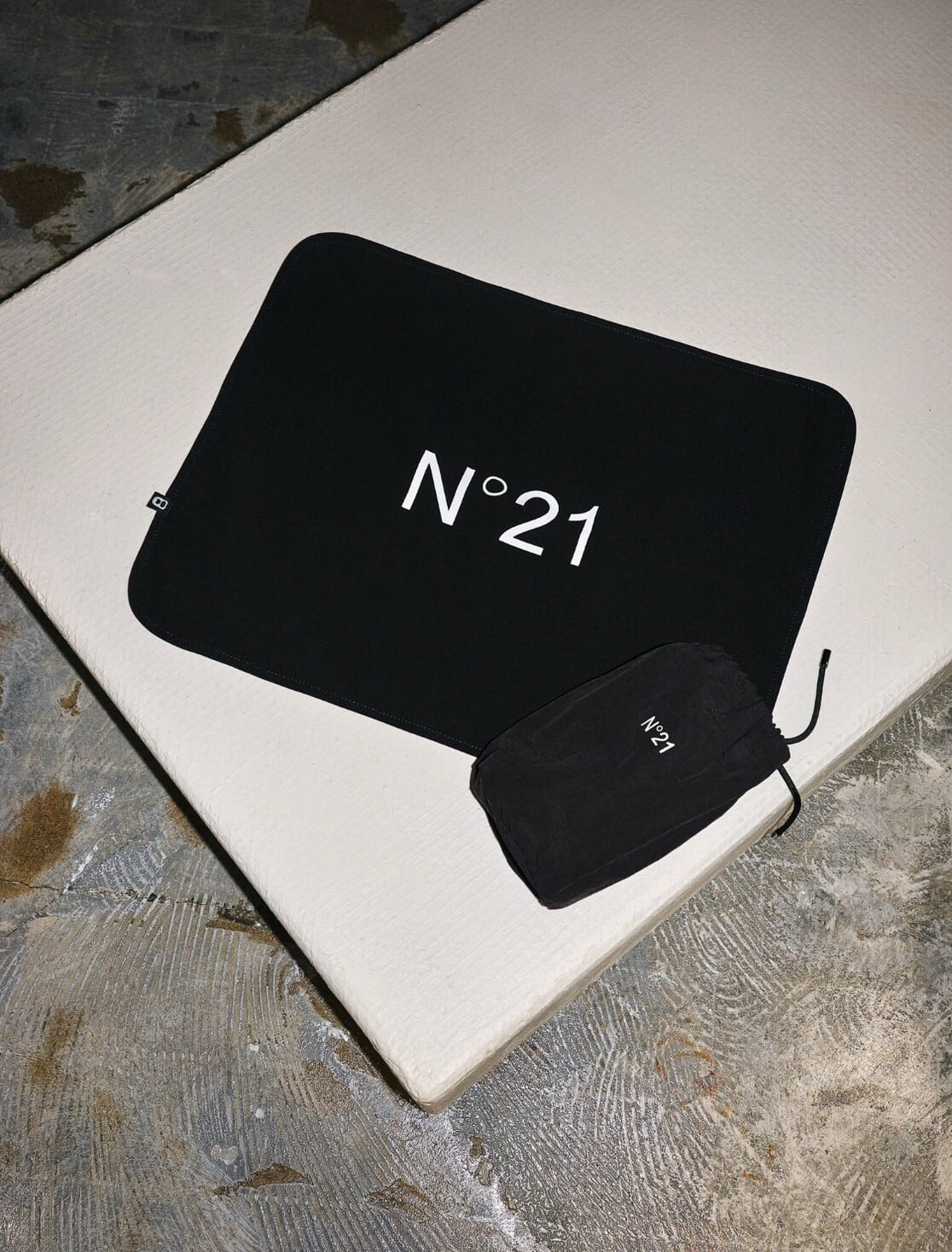 持ち運びに便利な、N°21 ロゴ入りの外袋付きカフェマット。