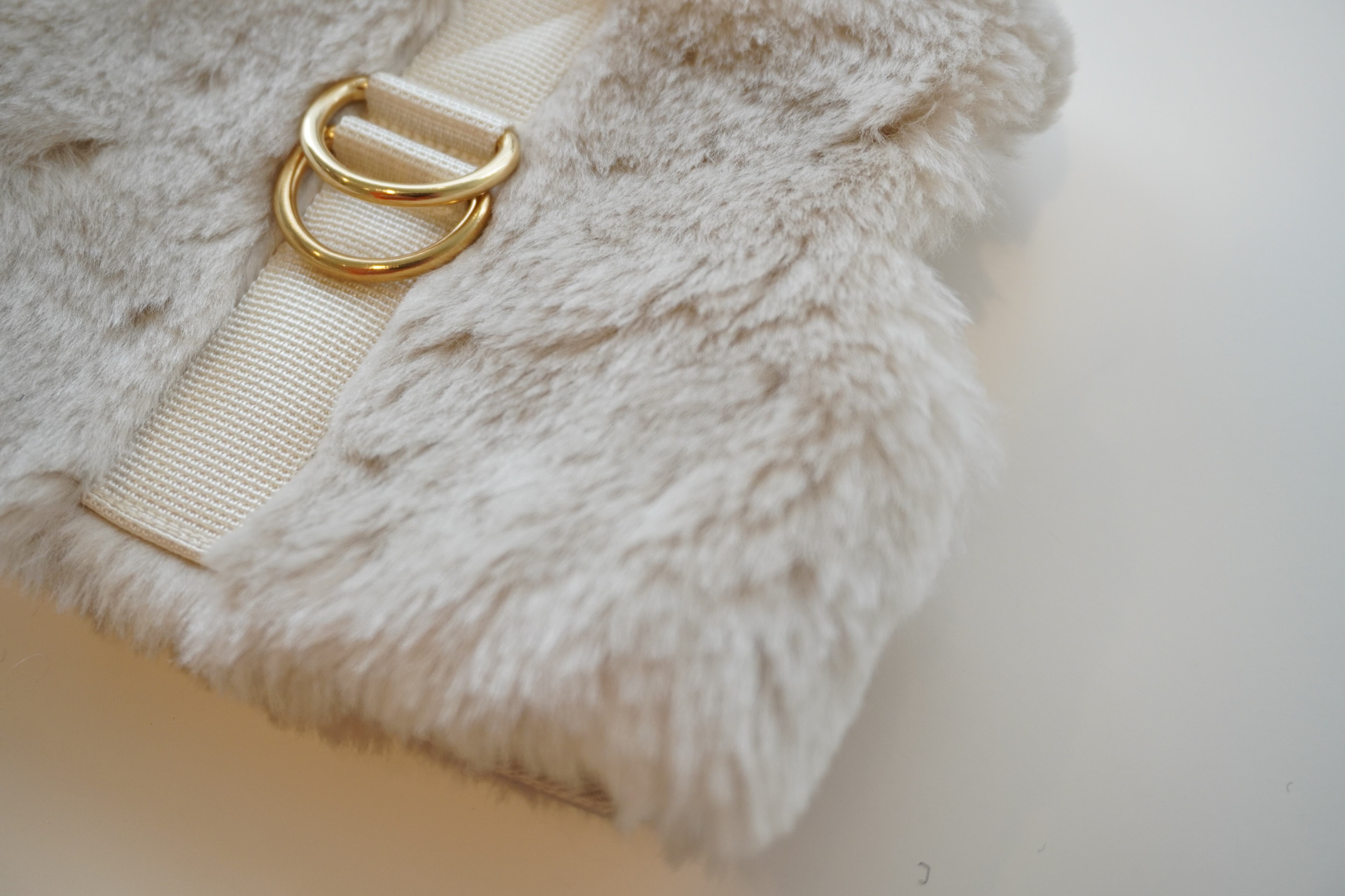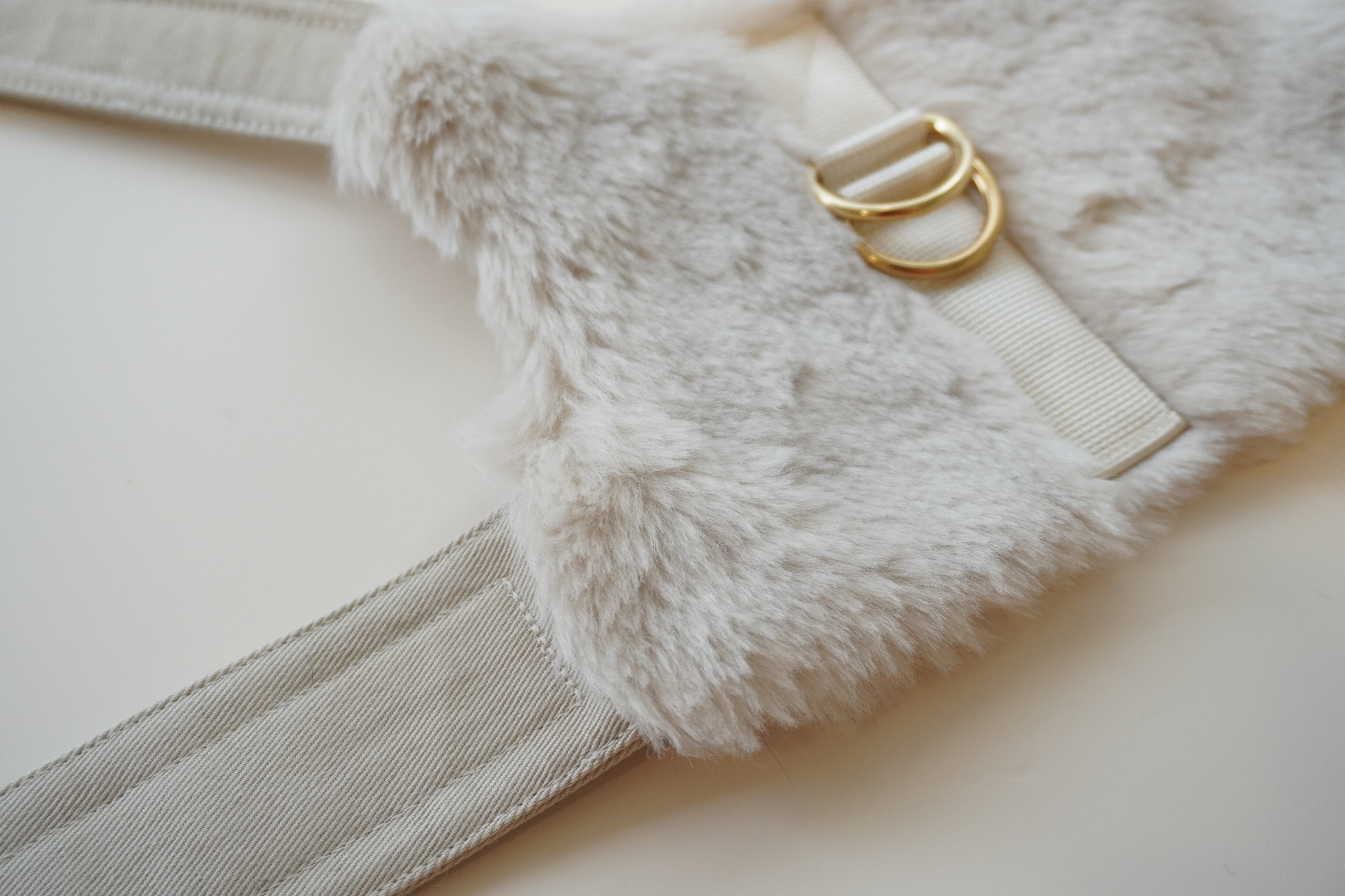 ウエアとハーネスを掛け合わせたイメージでファーのベストとして着用していただけます。
