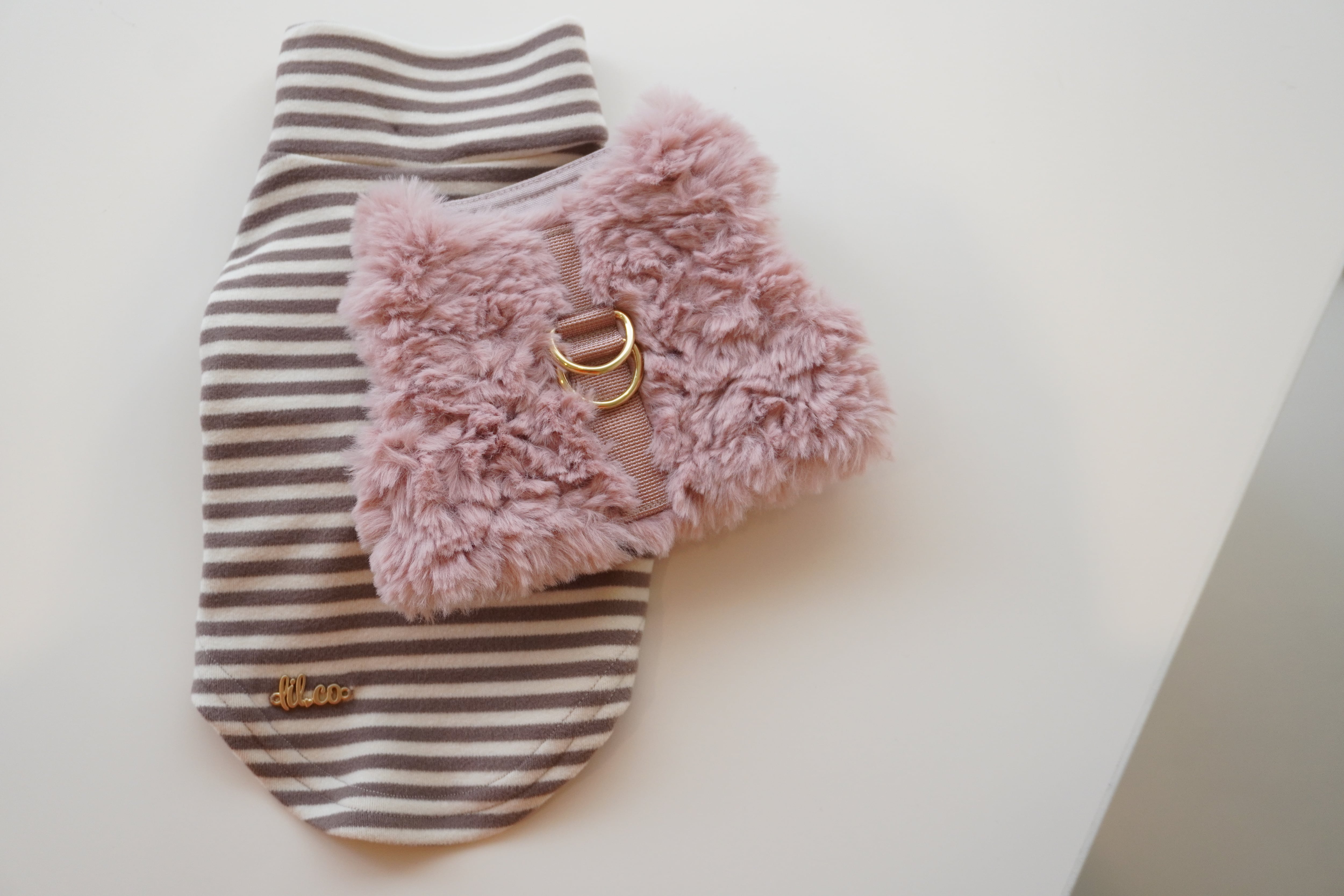 ウエアとハーネスを掛け合わせたイメージでファーのベストとして着用していただけます。
